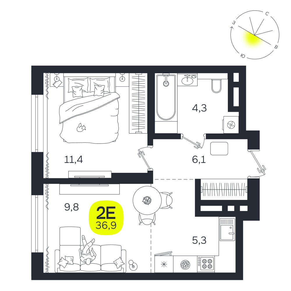 Мы учли разные жизненные сценарии покупателей и разработали несколько вариантов планировочных решений с мастер-спальнями, гардеробными и кухнями-гостиными. А для ценителей редких форматов – квартиры с террасами и эркерами.