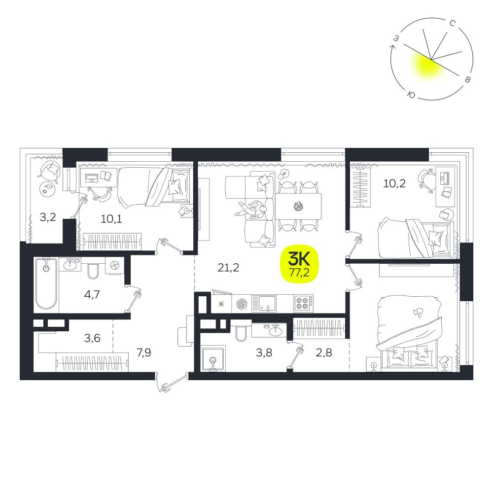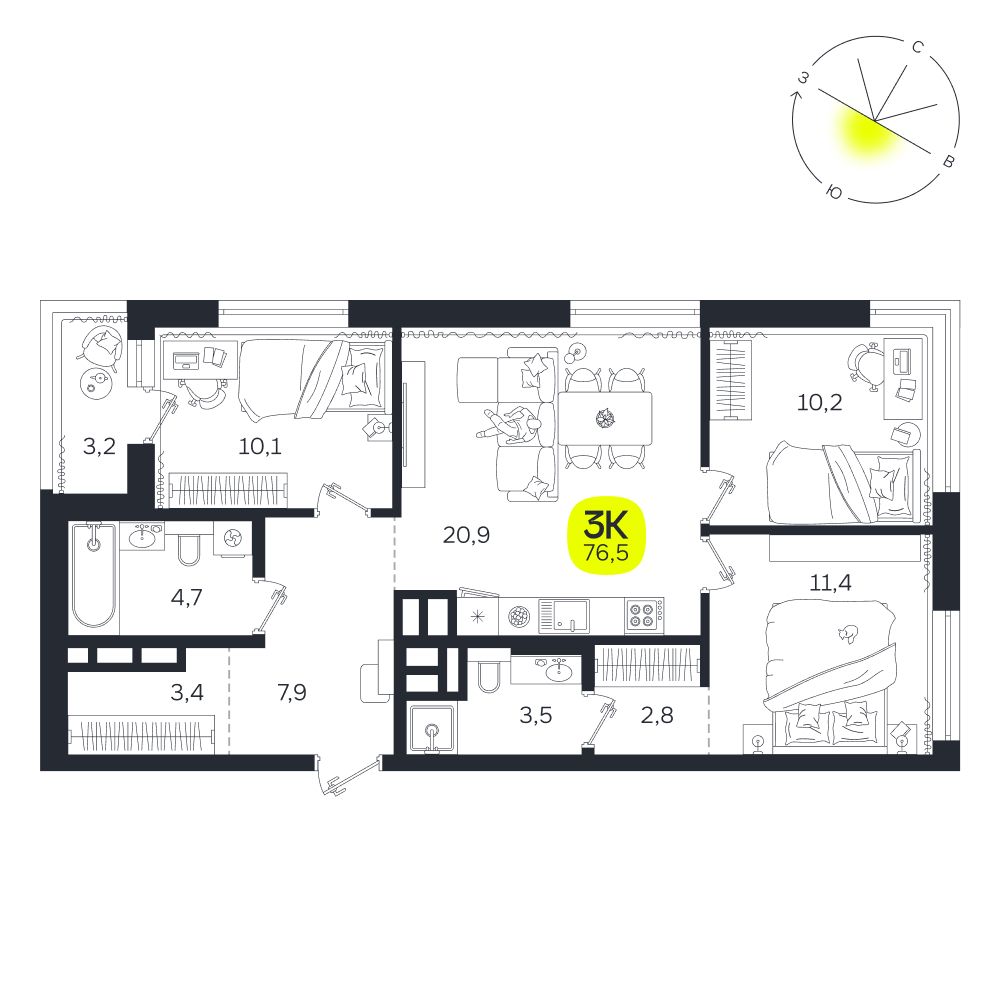 3-комнатная квартира 76,50 м²