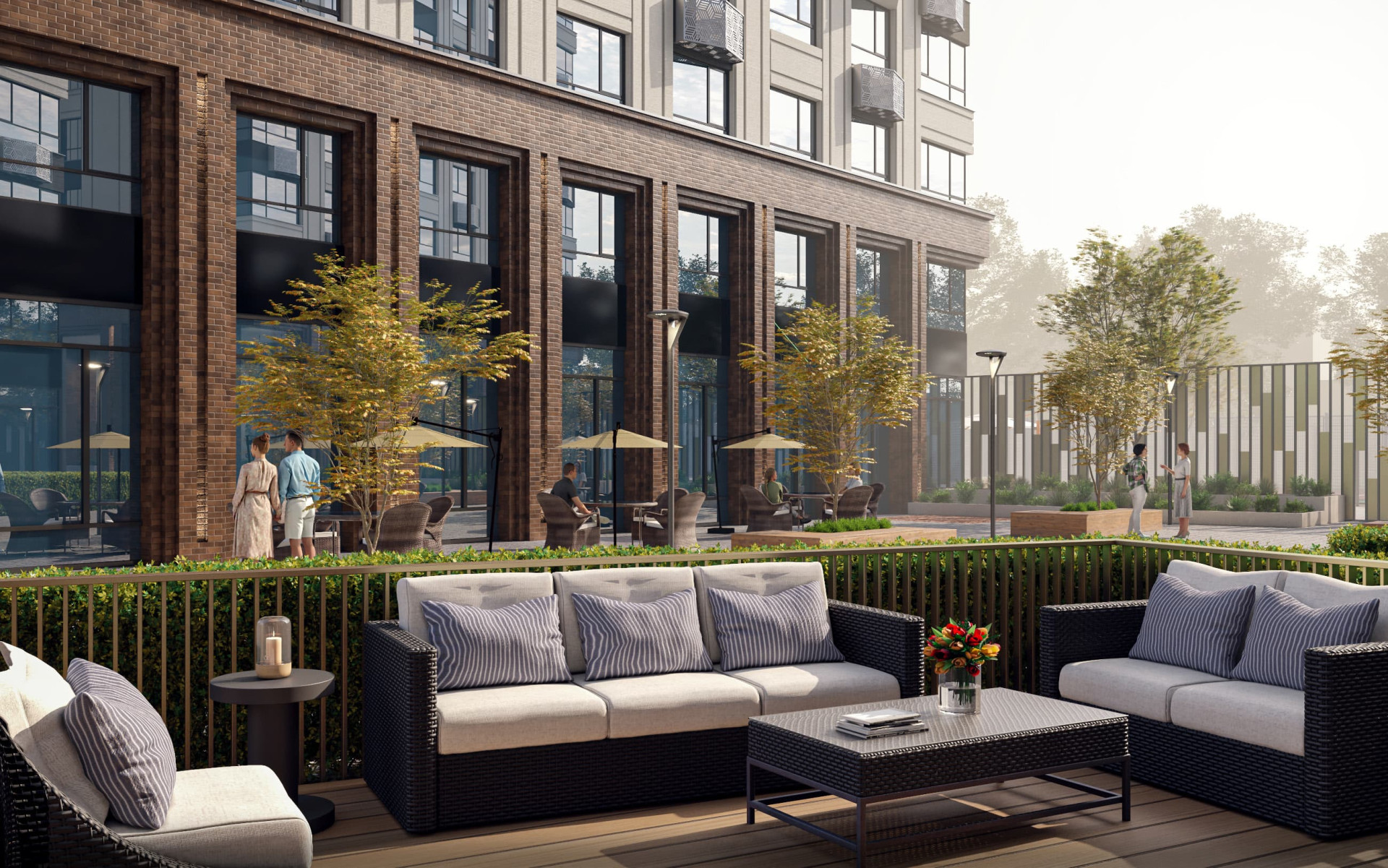 Собственное место под открытым небом. Можно установить навес, шезлонги, кресла и столик. Чтобы завтракать на свежем воздухе или ужинать всей семьей.