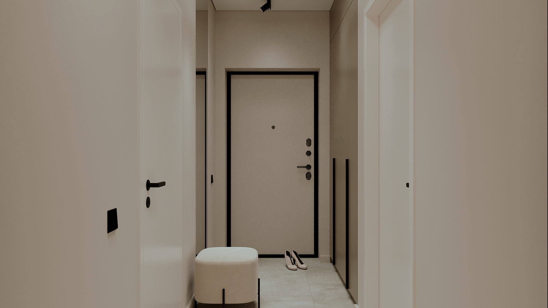 - Белая межкомнатная дверь с фурнитурой в цвете «графит»