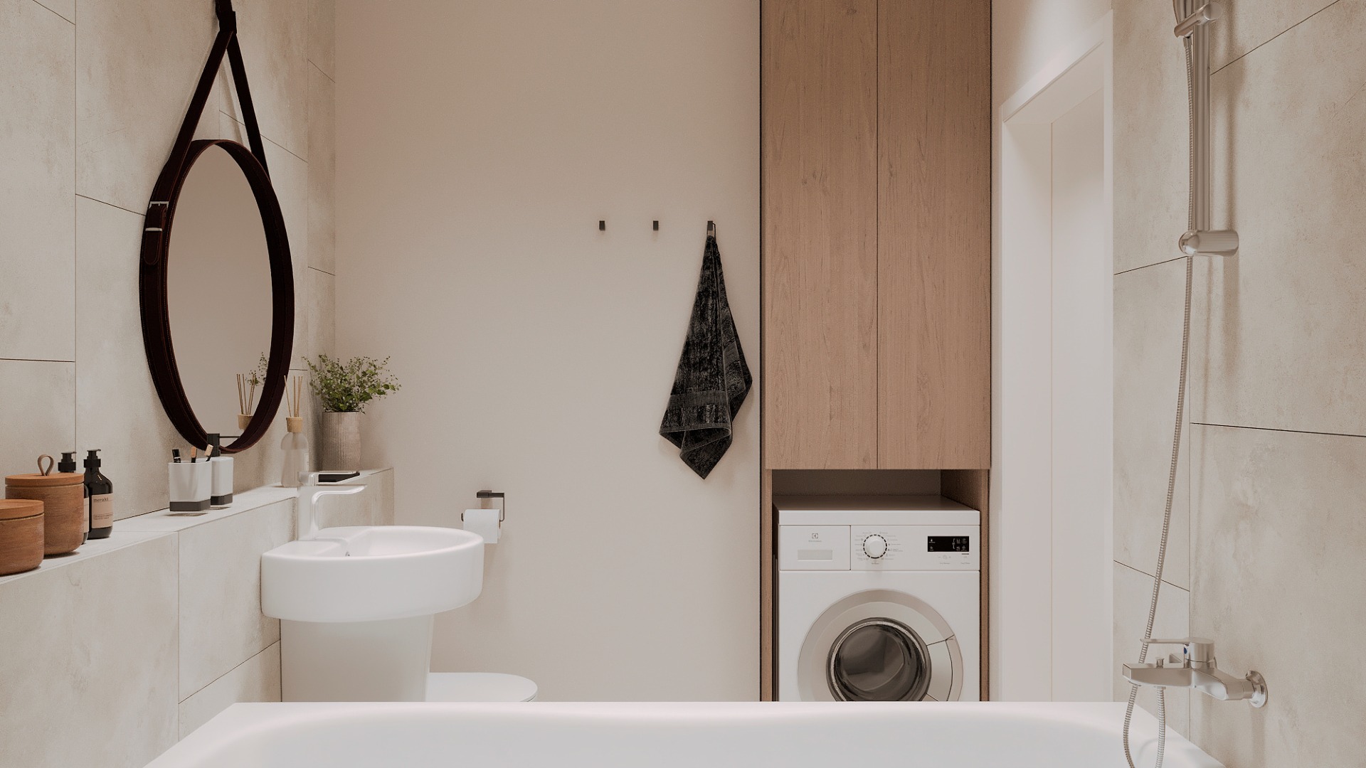 - Раковина, встроенная в подвесную тумбу с ящиками