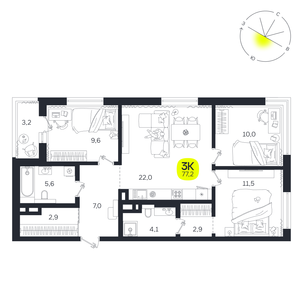 3-комнатная квартира 77,20 м²