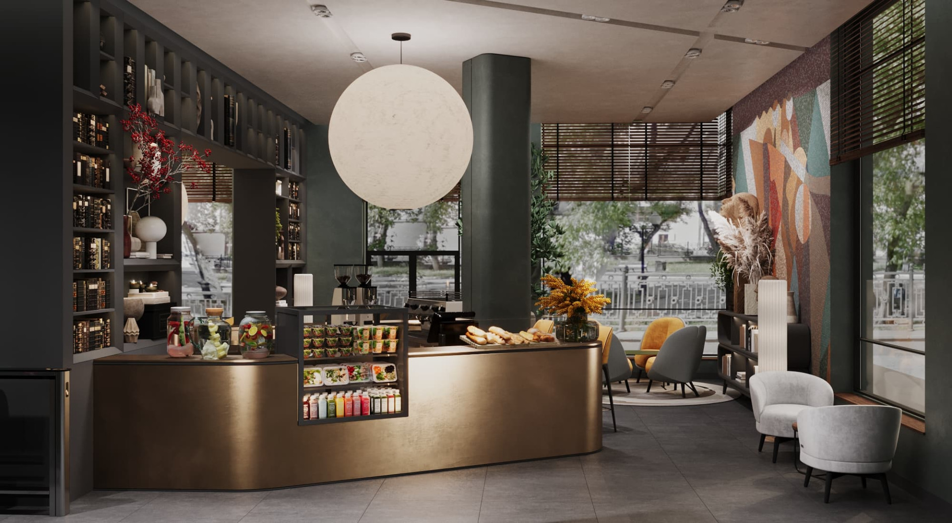 Это уютное и полезное пространство, чтобы назначить встречу, поработать или дождаться такси. А в любимой кофейне жители всегда могут насладиться чашечкой свежесваренного кофе с горячим круассаном или купить свежий хлеб.