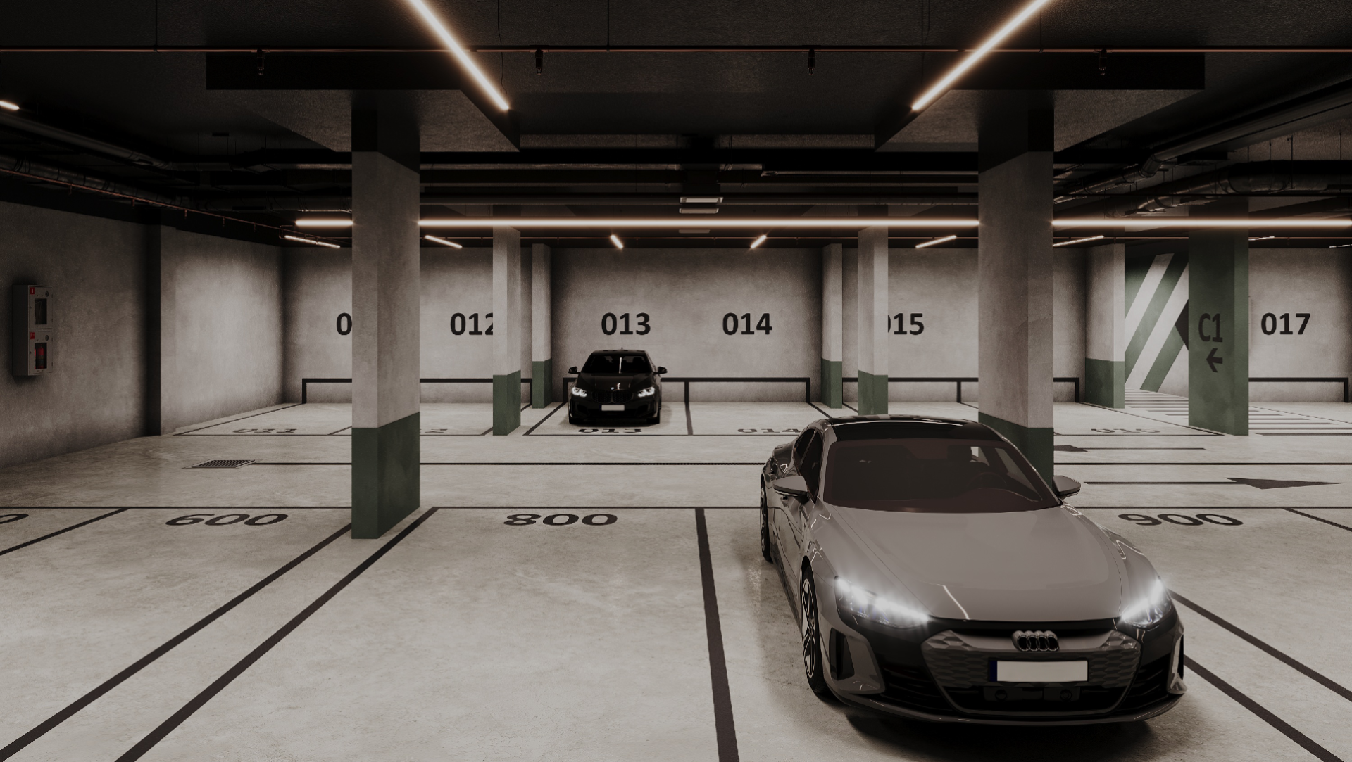 Под кварталом расположены паркинг и кладовые. Со своего этажа на бесшумном скоростном лифте можно спуститься в теплый паркинг. Для владельцев электромобилей могут быть организованы зарядные станции. На минус первом этаже организовано место для разгрузки мебели.