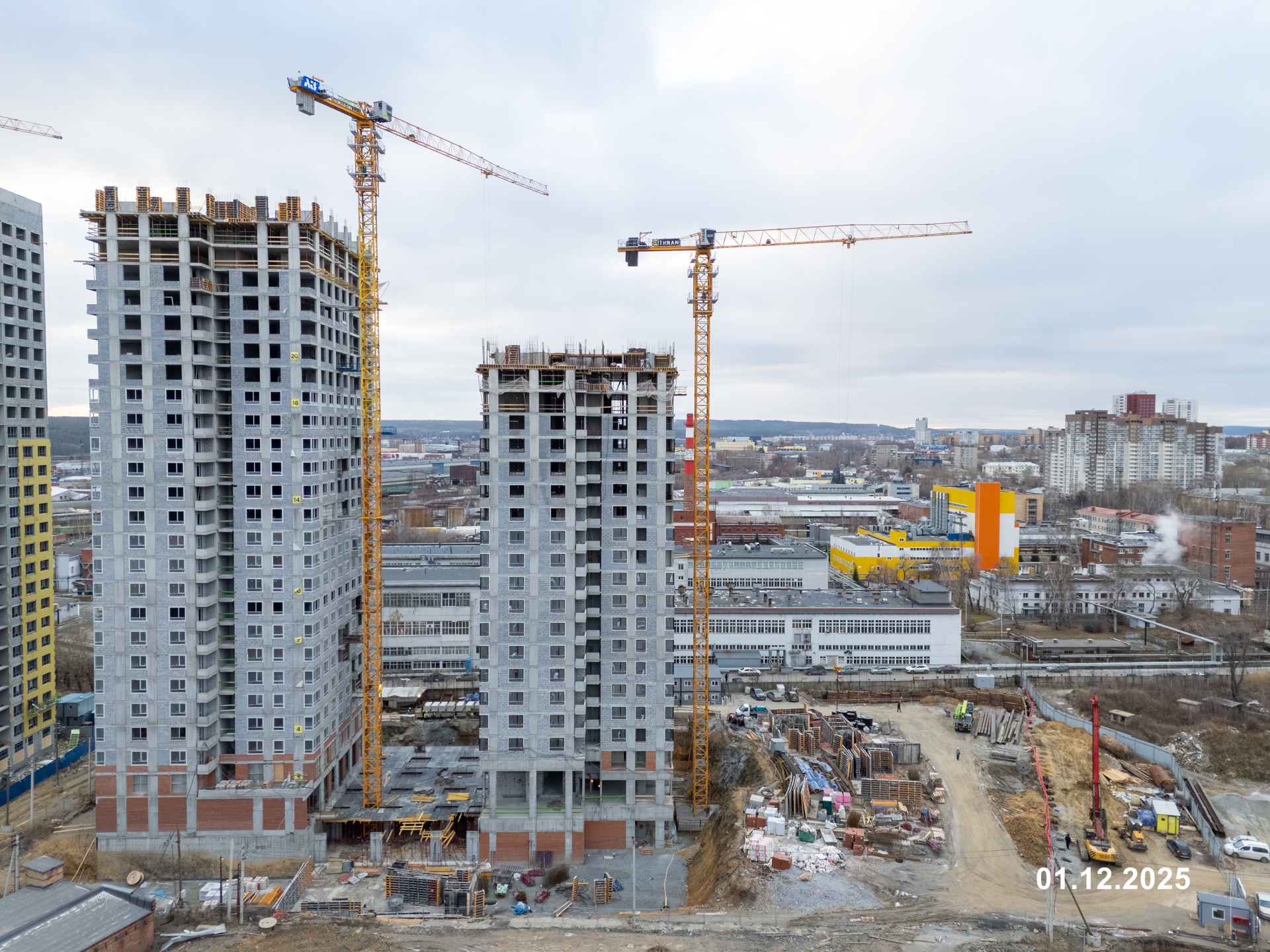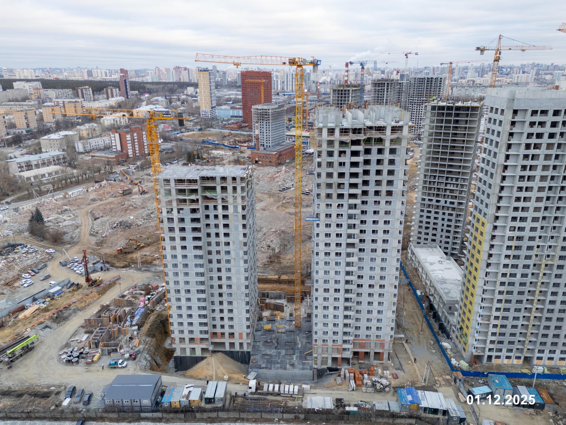 За окном — первый декабрьский морозец, а на стройплощадке «Лето на Титова» кипят такие же горячие рабочие будни. Пока зима только рисует узоры на стеклах, здесь строятся стены вашего будущего дома.