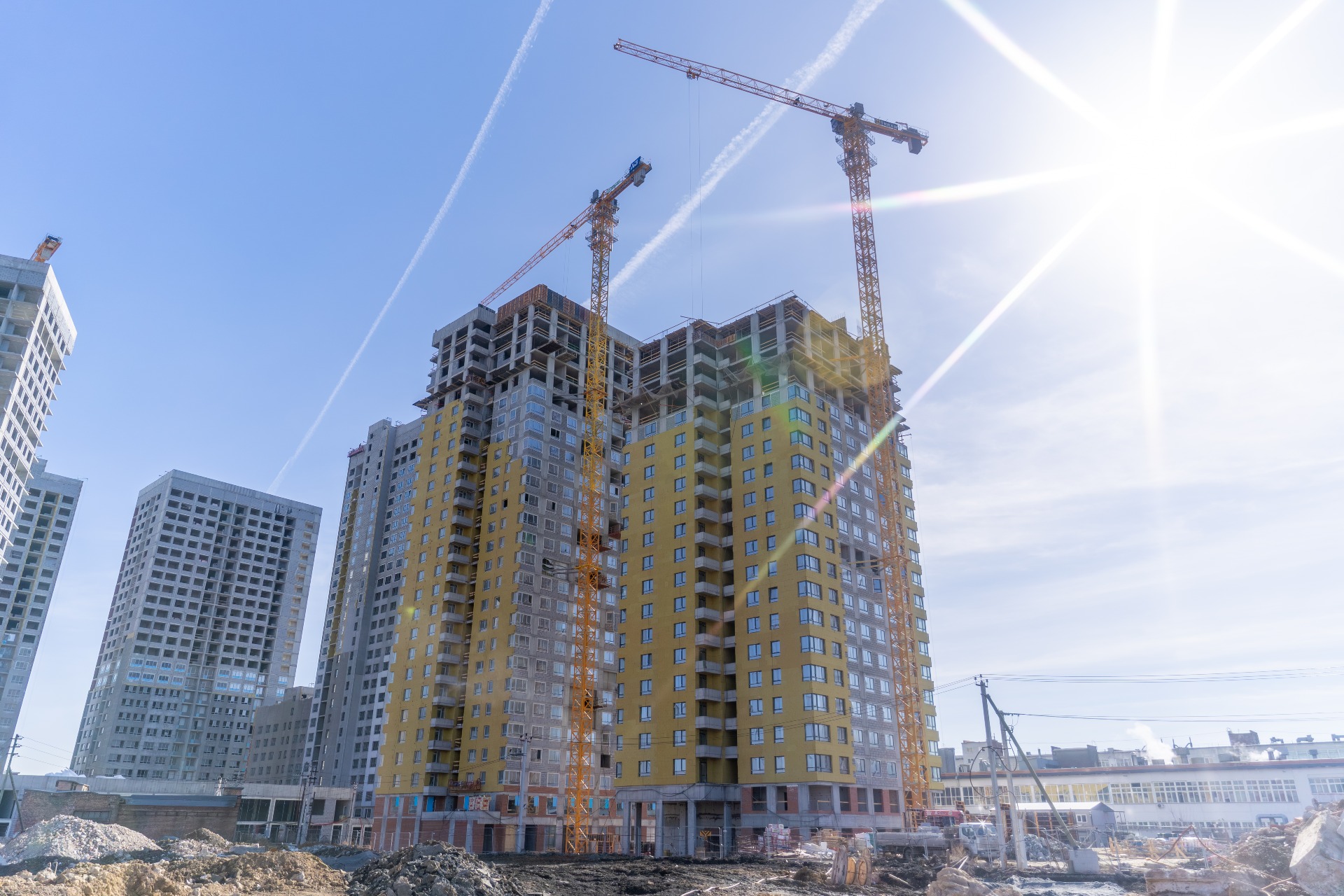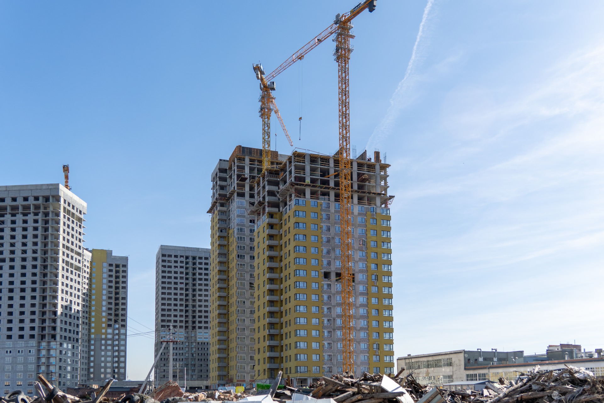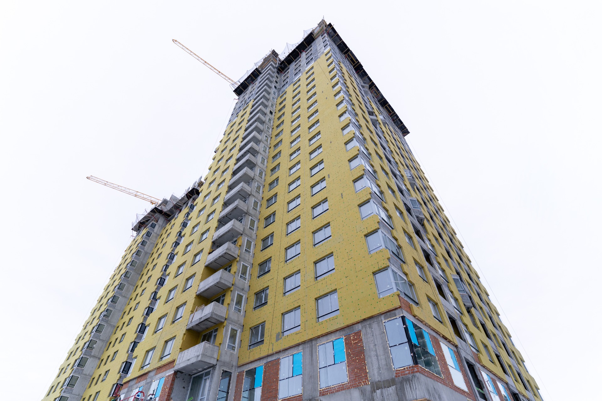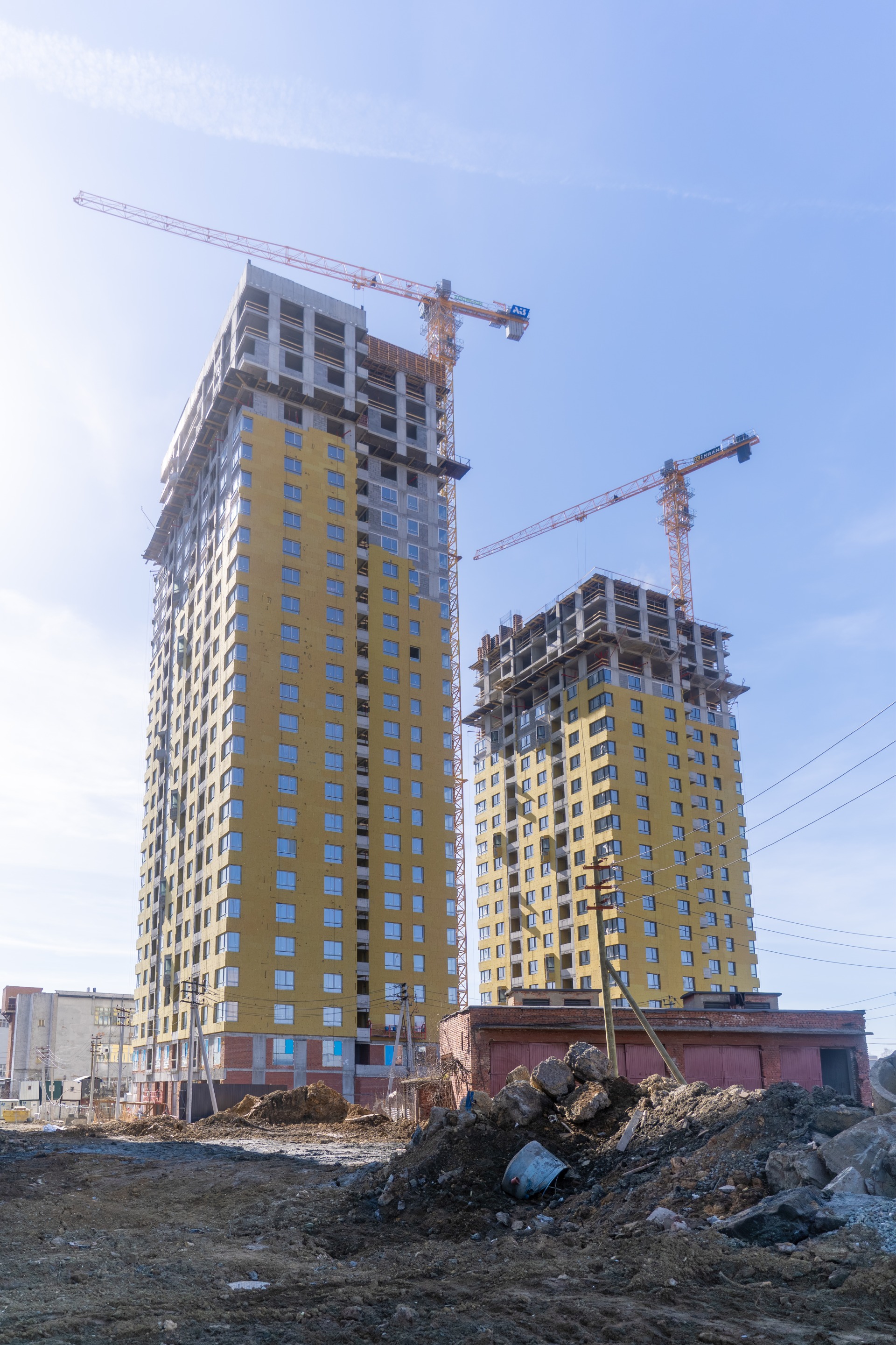 - Выполнена наружная кладка 3го дома - 17 этажей и 4го дома - 23 этажа.