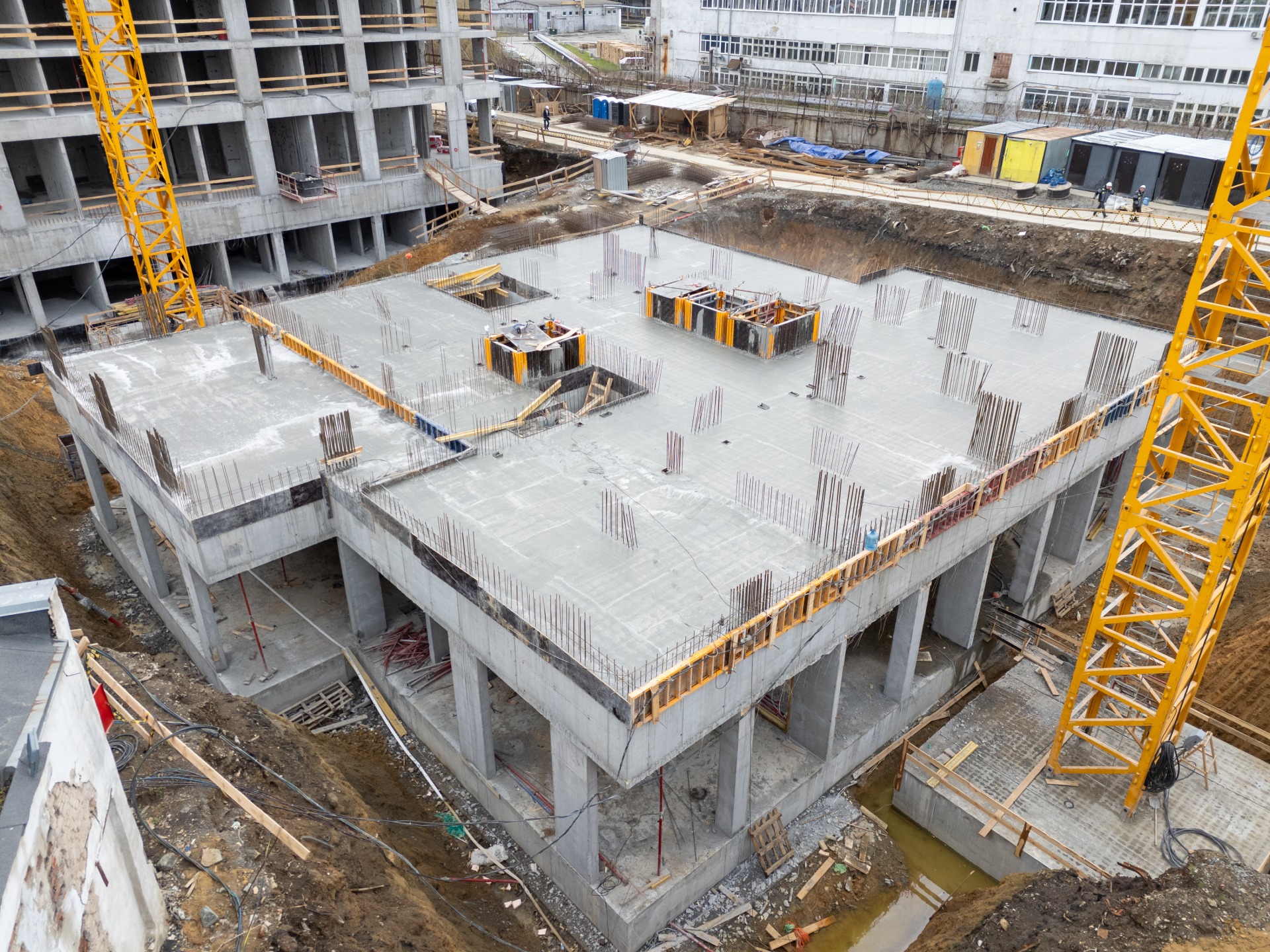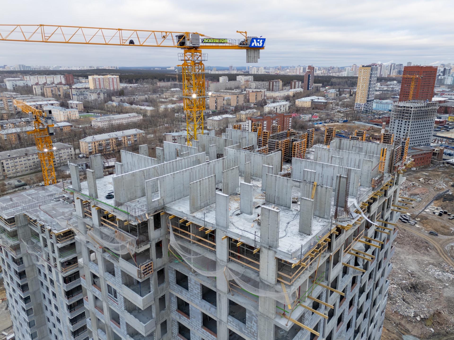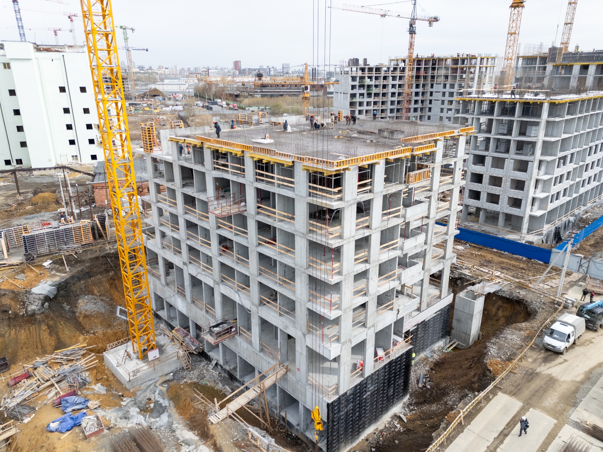 - В секции №4 завершили вертикальные железобетонные конструкции 10 этажа. До конца месяца закончим и перекрытие.
