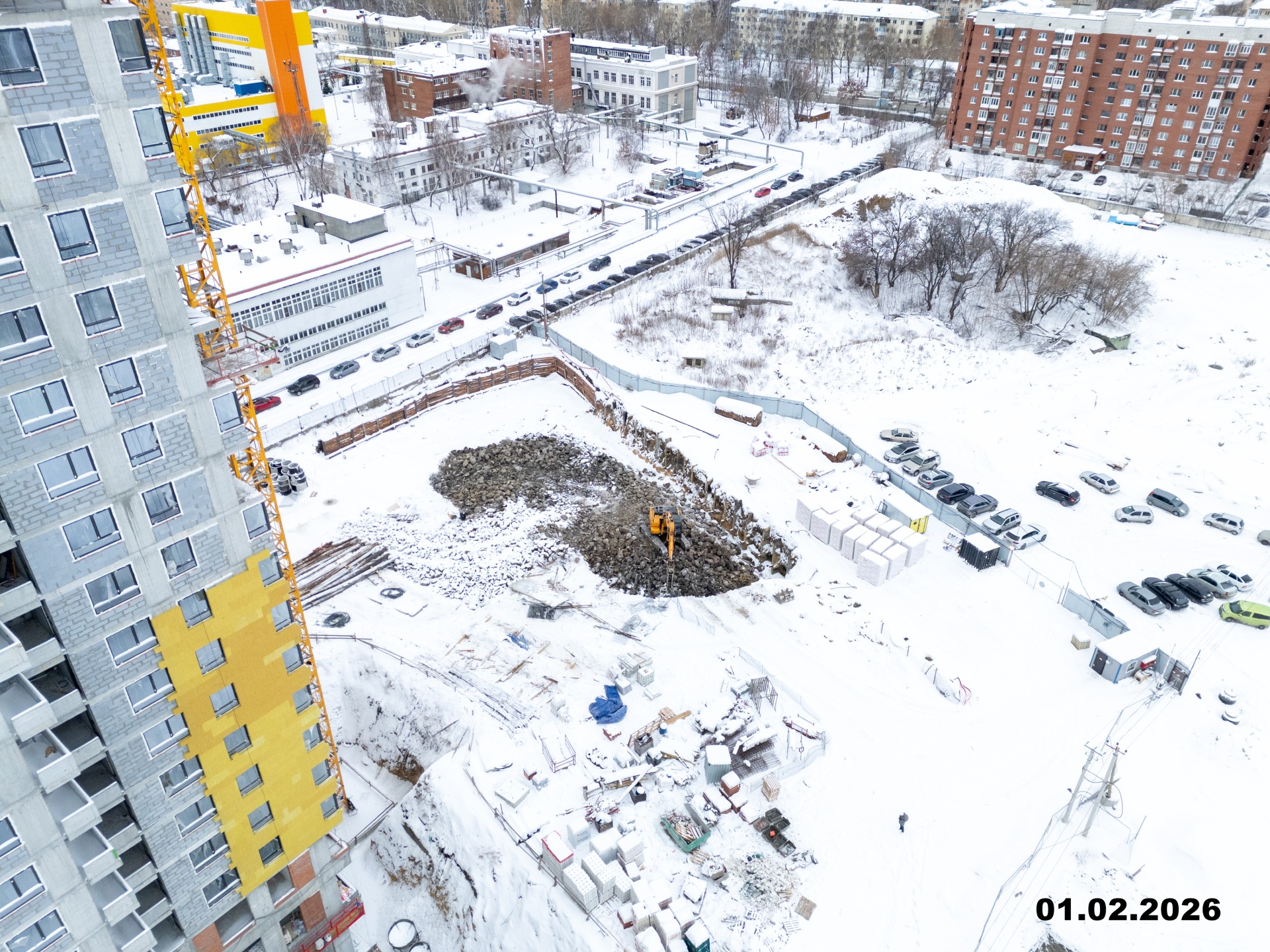 В секции №4 ведутся кладочные работы на 2-м этаже. Активно продолжаются железобетонные работы на плите перекрытия 16-го этажа и вертикальных конструкциях 17-го этажа.