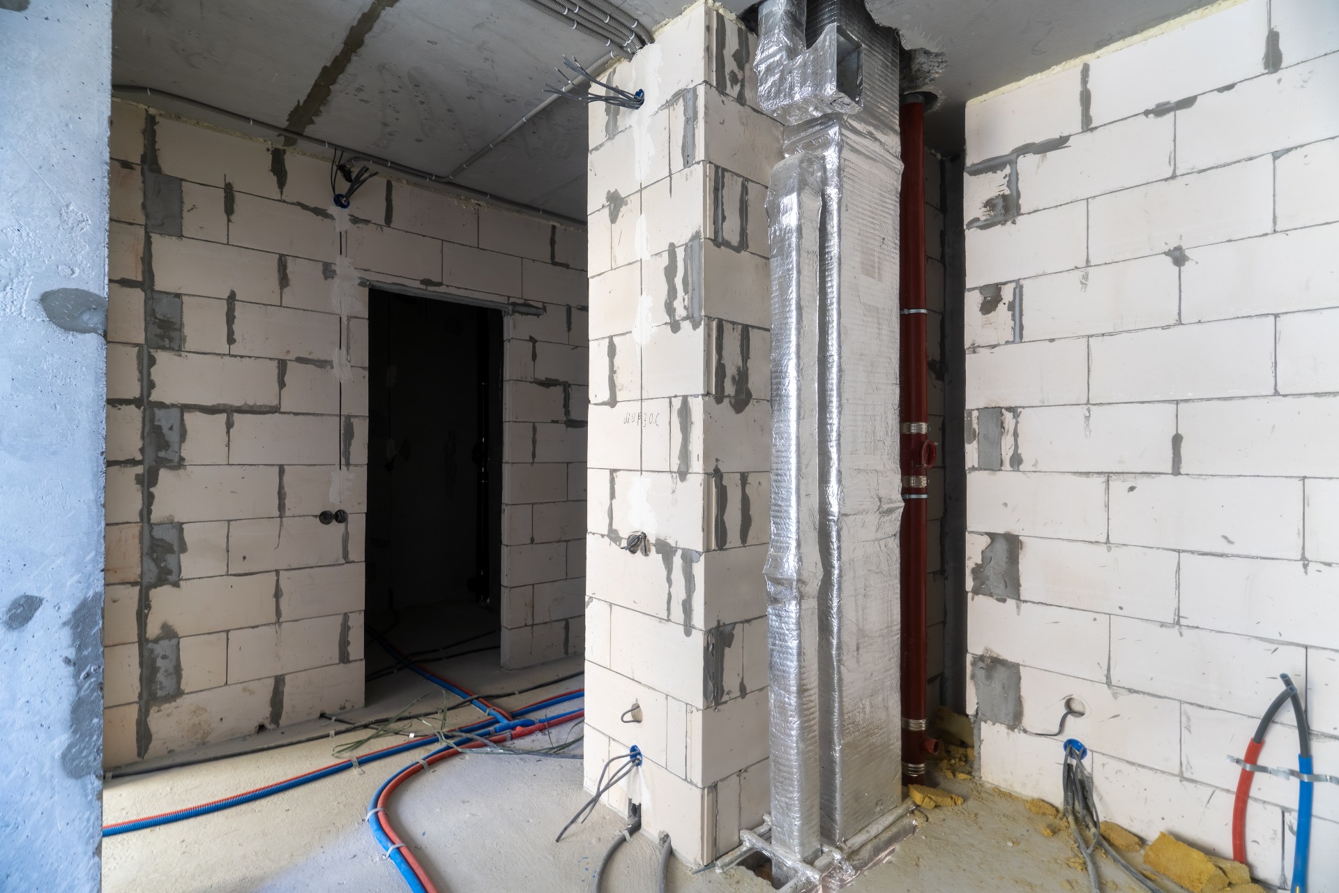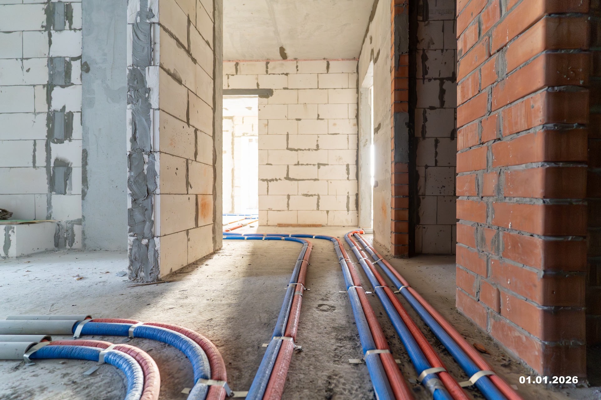 • На 5 и 6 этажах производится раскатка горизонтальных поквартирных систем отопления;
