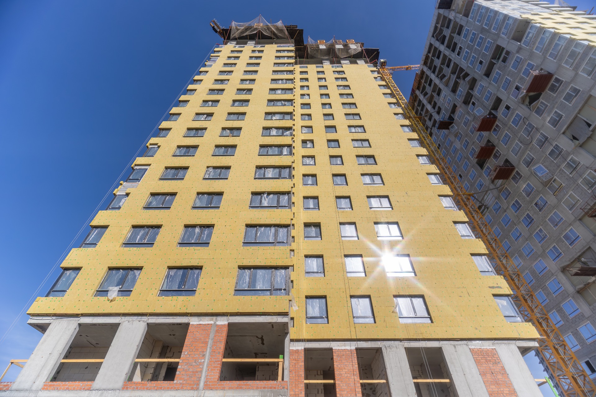 - Выполнено утепление фасада с 3 по 16 этаж (60%)