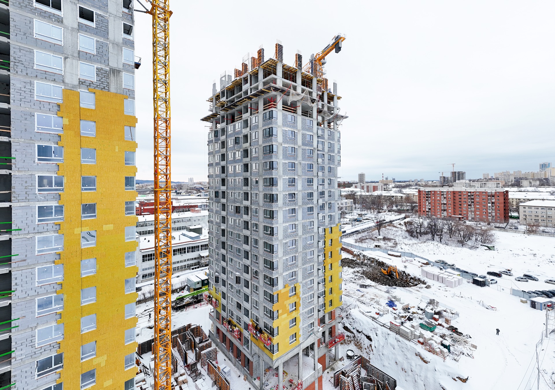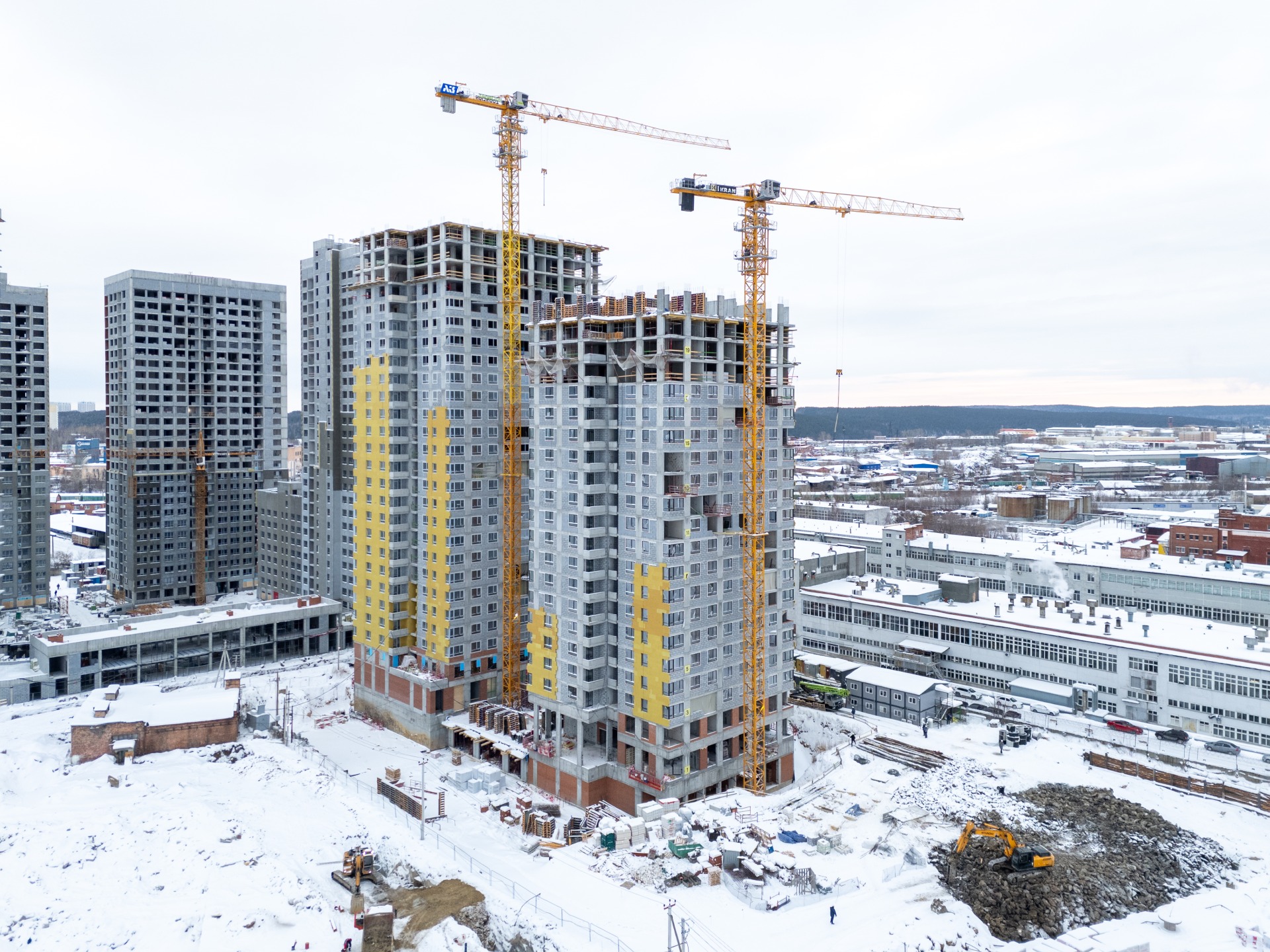 Одно в этом уральском пейзаже остаётся неизменным: мы продолжаем возводить жилой квартал Лето на Титова по графику — и никакие бури нам не преграда: