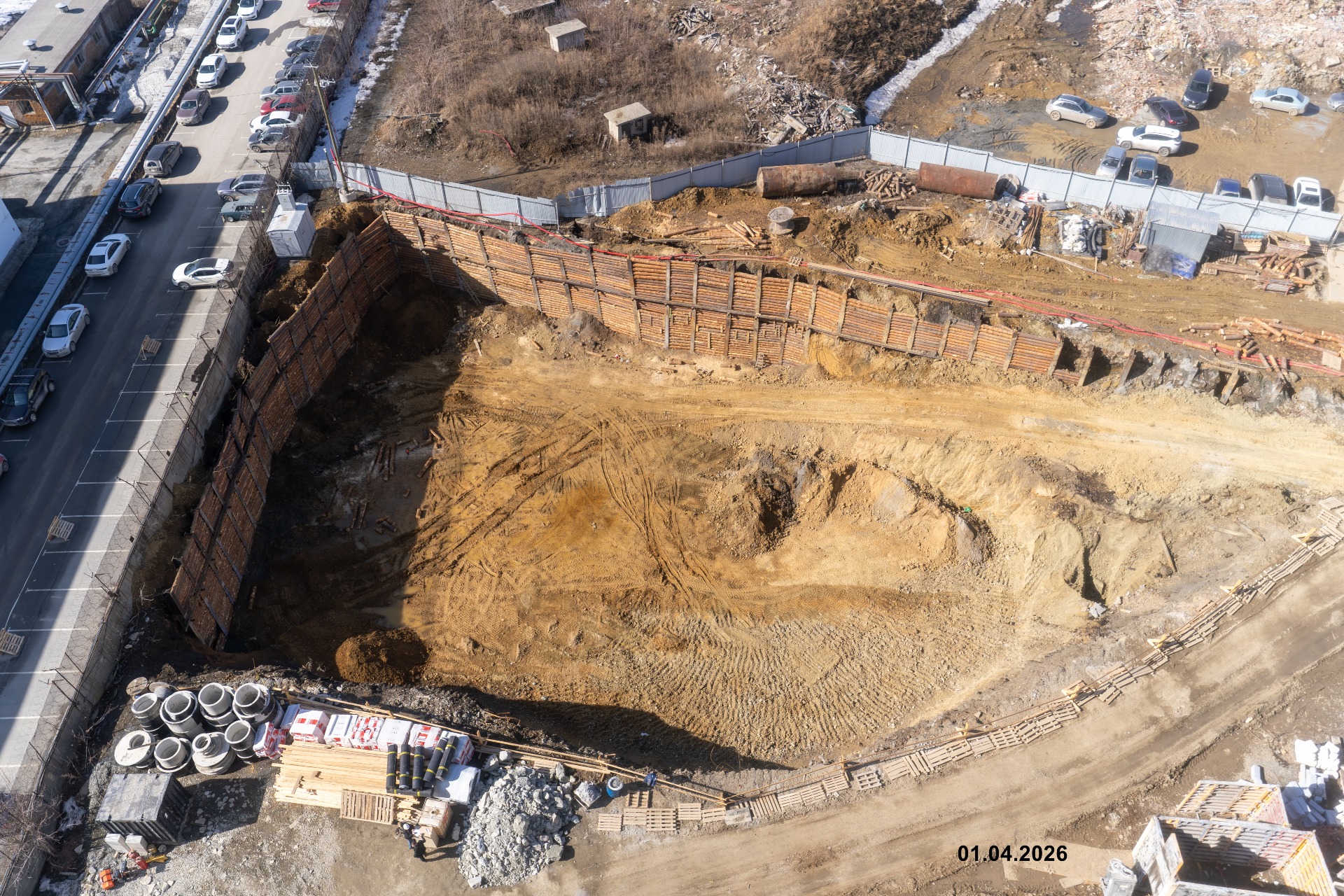 - пробурили отверстия под шпунт 2го дома и паркинга, идет погружение шпунта, ведутся раскопки котлована