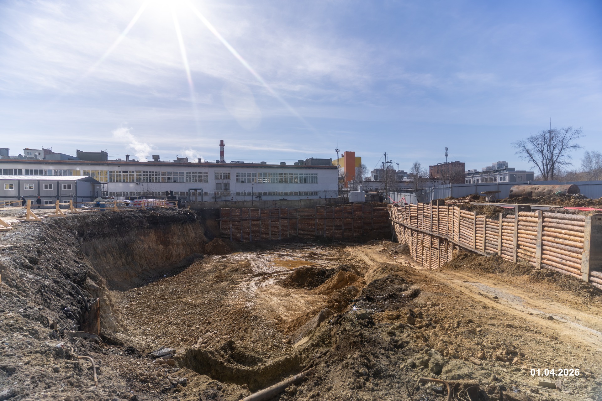- Ведутся работы по шпунтованию ограждения котлована.